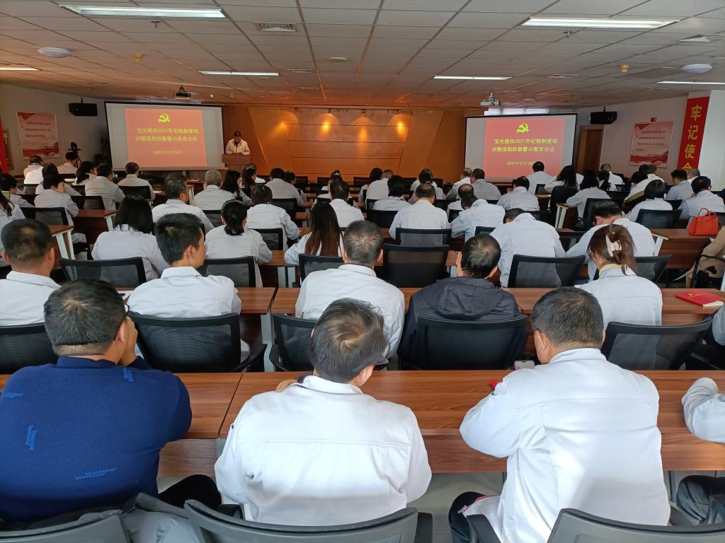 11月18日,寶光集團所屬寶光股份紀委組織召開紀檢制度宣貫培訓、違規掛靠知識學習及案例警示教育、廉潔提醒談話會議,各黨支部紀檢委員、黨風廉政建設監督員、關鍵崗位人員共計139人參加會議。