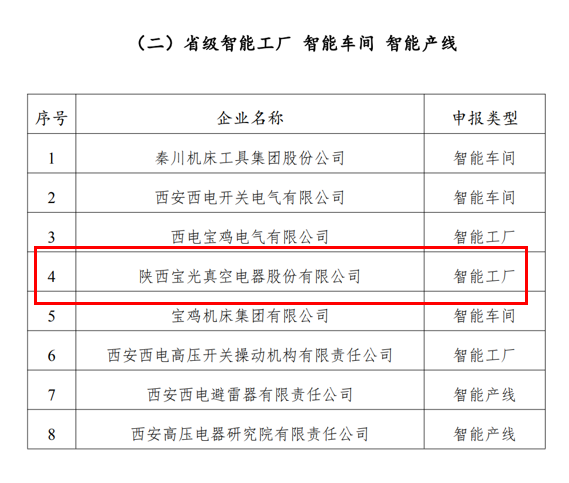 3月14日,陜西省工信廳裝備工業發布2021年度省級智能制造試點示范企業及省級智能工廠名單,寶光股份獲評“2021年度省級智能工廠”。