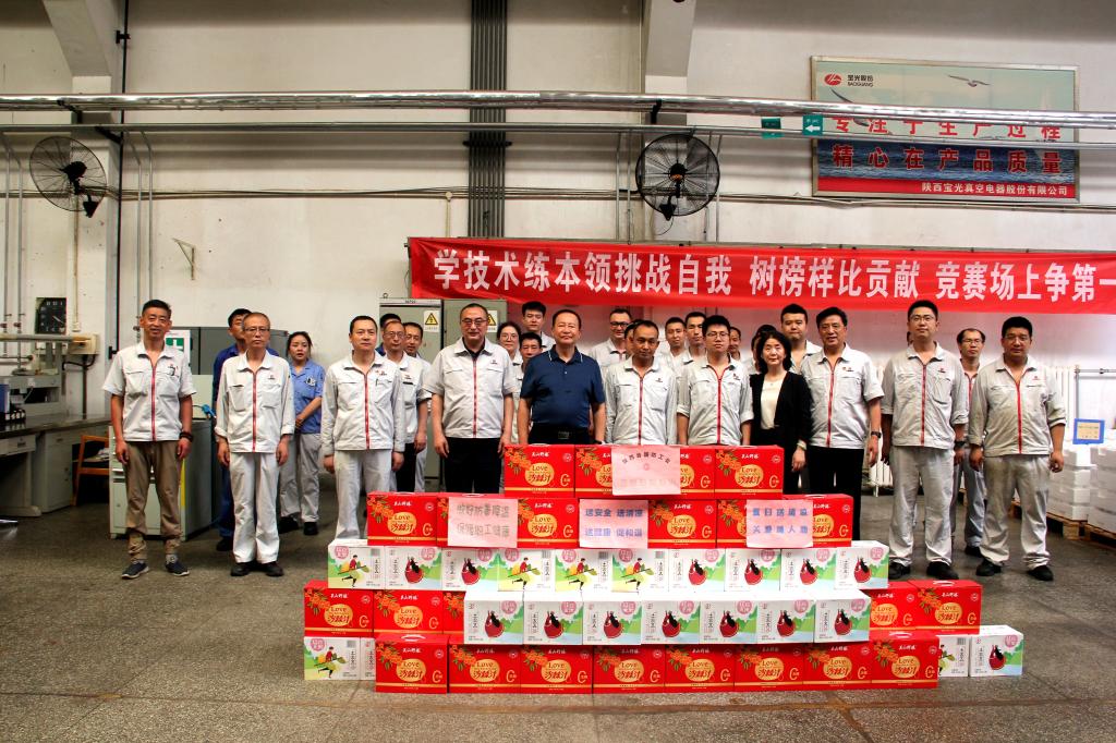 7月26日,陜西省總工會黨組成員、副主席、陜西省國防工會主席吳志毅一行走訪慰問寶光股份生產(chǎn)一線的干部職工,寶光股份黨委書記、總經(jīng)理謝洪濤、工會主席付宗喜、副總經(jīng)理張軍陪同慰問。