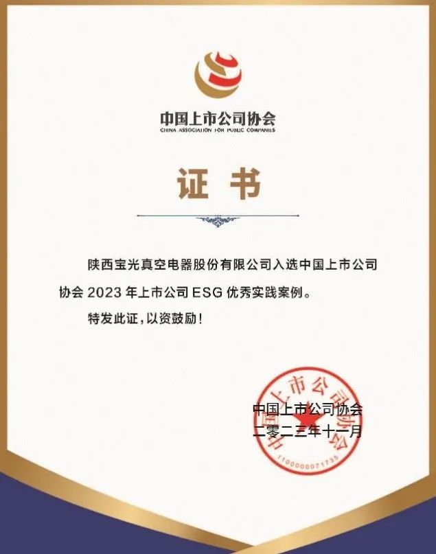 后續(xù),中國上市公司協(xié)會將匯編形成《中國上市公司ESG最佳實踐案例2023》在可持續(xù)發(fā)展大會上發(fā)布。獲評優(yōu)秀ESG實踐案例,充分展現(xiàn)了寶光股份在完善ESG治理體系、貫徹綠色發(fā)展理念、履行社會責任等方面的優(yōu)秀做法。