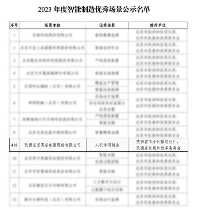 近期,工業(yè)和信息化部公布了“2023年度智能制造示范工廠揭榜單位和優(yōu)秀場(chǎng)景名單”,寶光股份申報(bào)的《真空滅弧室關(guān)鍵零件智能生產(chǎn)線》項(xiàng)目順利入選智能制造示范優(yōu)秀場(chǎng)景,標(biāo)志著寶光股份智能制造水平邁上新臺(tái)階。