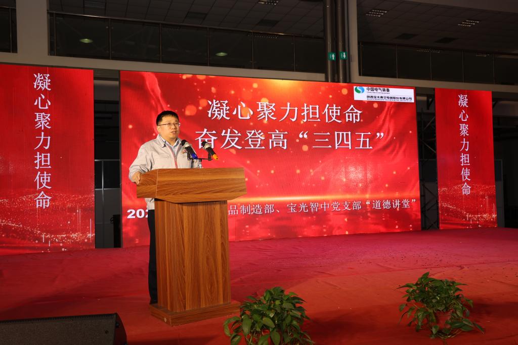 為提升廣大職工思想道德修養(yǎng),扎實(shí)推進(jìn)企業(yè)精神文明建設(shè),進(jìn)一步激發(fā)廣大干部職工齊心協(xié)力、干事創(chuàng)業(yè)、勇拓新局的信心和決心,以優(yōu)異成績完成“十四五”登高目標(biāo),12月8日下午,由寶光股份黨委主辦,滅弧室產(chǎn)品制造部黨支部、寶光智中公司黨支部聯(lián)合承辦的“凝心聚力擔(dān)使命,奮發(fā)登高‘三四五’”道德講堂活動順利舉行。寶光股份黨委書記、董事長謝洪濤,寶光股份黨委副書記、總經(jīng)理劉壯出席會議并作點(diǎn)評講話。