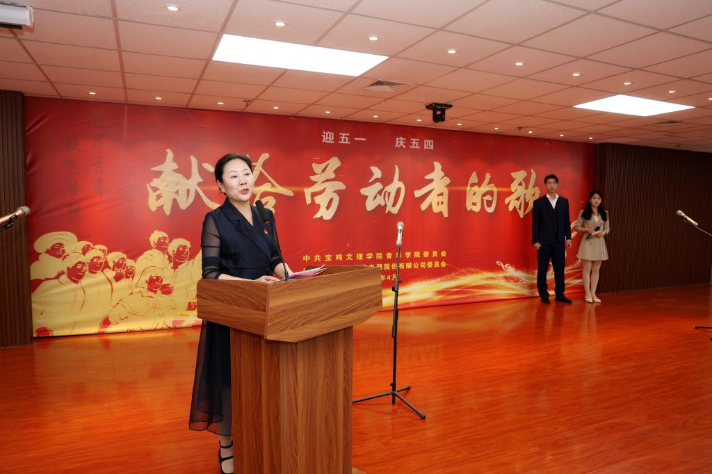 為深入學習宣傳貫徹習近平新時代中國特色社會主義思想和黨的二十大精神,切實營造尊重勞動、關愛青年的濃厚氛圍,在“五一”勞動節、“五四”青年節來臨之際,公司黨委與寶雞文理學院音樂學院黨委聯合開展“弘揚勞動精神  傳承工匠文化”道德講堂,為廣大干部職工送上了一場精彩紛呈的文化大餐。寶雞文理學院音樂學院黨委書記黃瑋、寶光股份黨委書記、董事長謝洪濤出席活動并致詞。