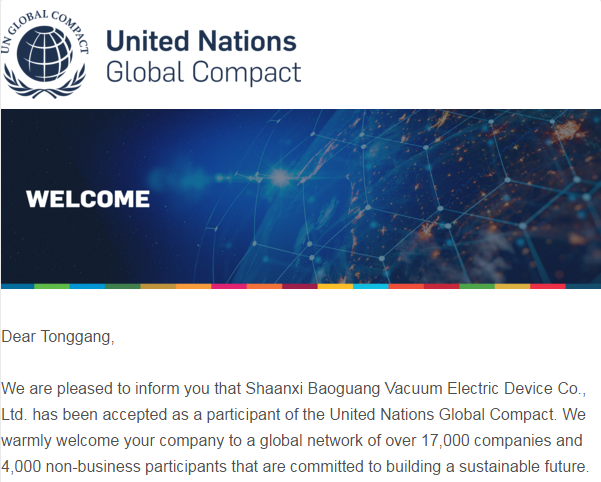 近日,寶光股份正式批準加入聯合國全球契約組織(United Nations Global Compact,簡稱UNGC),標志著寶光股份在提升國際品牌形象、深化企業社會責任實踐方面邁出了堅實的一步。