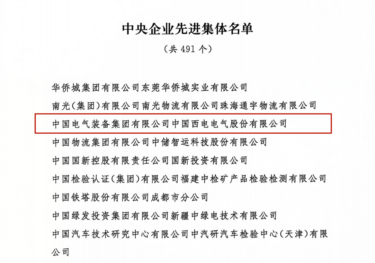 中央企業(yè)先進(jìn)集體和勞動模范每5年評選一次,是國務(wù)院國資委系統(tǒng)的最高級別榮譽(yù)。在中華人民共和國成立75周年之際, 為表彰先進(jìn),樹立典型,進(jìn)一步激勵中央企業(yè)廣大職工在全面推動國資央企高質(zhì)量發(fā)展的新征程中建功立業(yè),最終由人力資源社會保障部、國務(wù)院國資委聯(lián)合表彰。此次榮獲“中央企業(yè)先進(jìn)集體”稱號,不僅是對西電近年來辛勤耕耘和不懈努力的肯定,更是對其在科技創(chuàng)新、產(chǎn)業(yè)發(fā)展和社會責(zé)任等方面取得顯著成績的表彰。西電將以此次榮獲“中央企業(yè)先進(jìn)集體”稱號為契機(jī),進(jìn)一步加大科技創(chuàng)新力度,提升產(chǎn)業(yè)發(fā)展水平,積極履行社會責(zé)任,為建設(shè)世界一流企業(yè)貢獻(xiàn)西電力量!