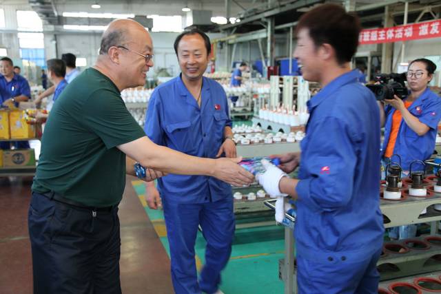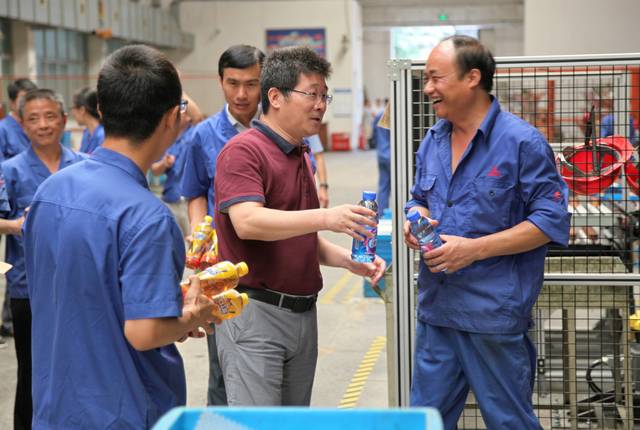 在生產一線,領導們?yōu)橐痪€員工遞上一瓶瓶清涼飲料,并關切的說:“你們辛苦了,注意安全”。一瓶瓶飲料,一句句暖心的話,體現著公司黨政工對員工的關愛,同時也激發(fā)了員工戰(zhàn)高溫、促生產、保訂單信心和決心。