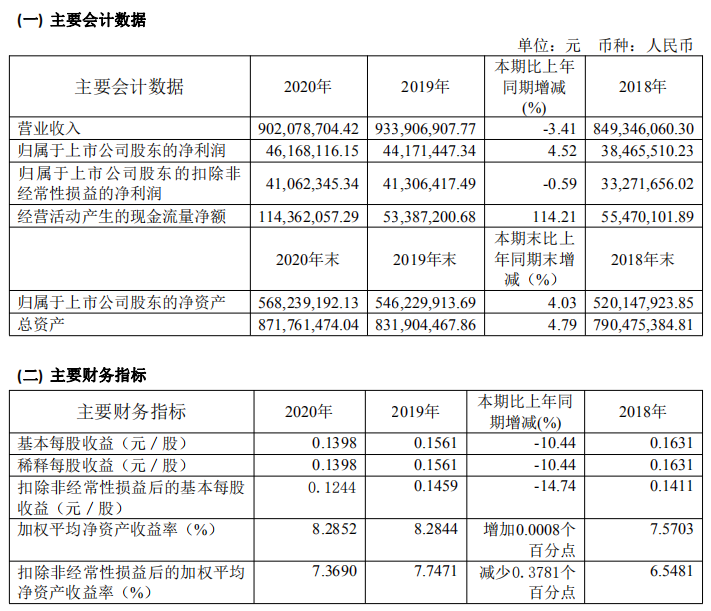 寶光股份2020年年度主要財(cái)務(wù)指標(biāo)