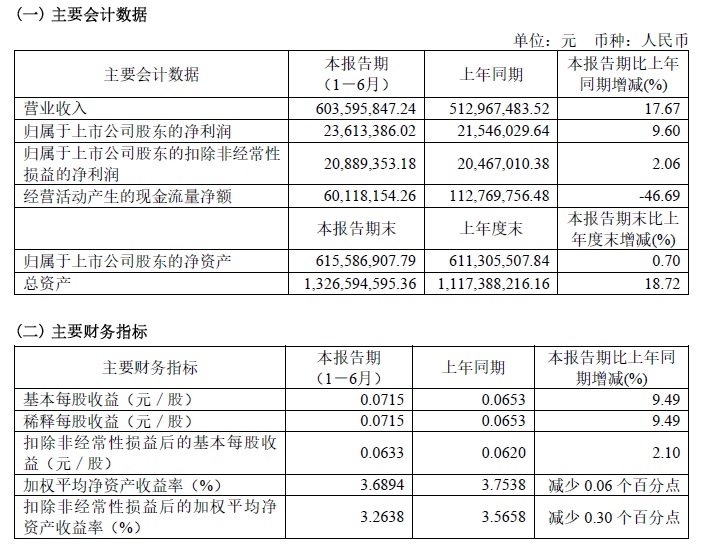 寶光股份2022年半年度主要財務(wù)指標(biāo)