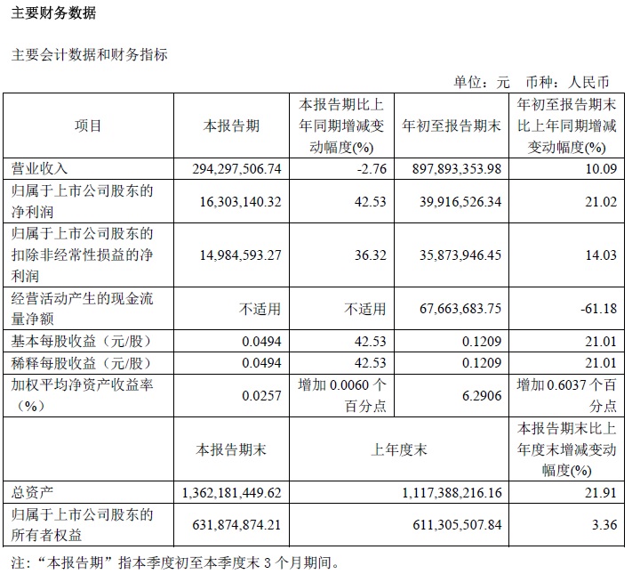 寶光股份2022年三季度主要會計數(shù)據(jù)和財務指標