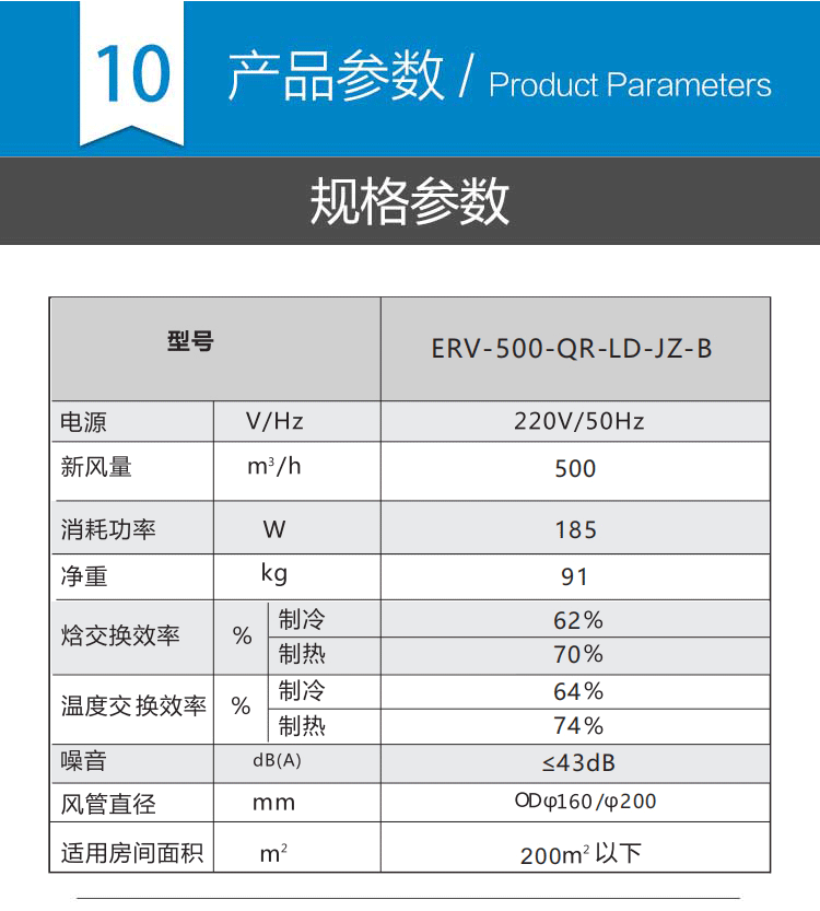 2、新風(fēng)量:500m3/h,尺寸:1620*600*440mm,功率160W;
